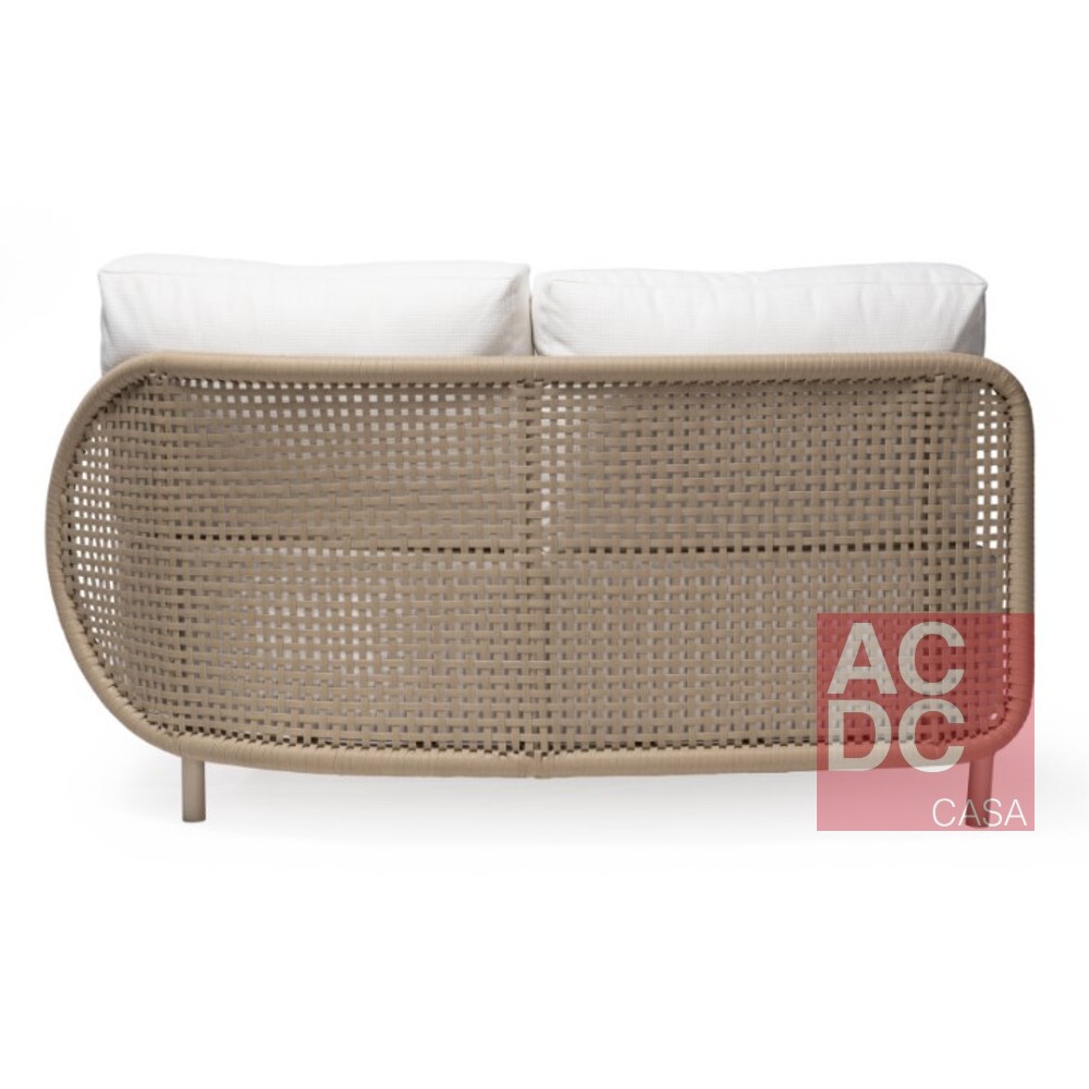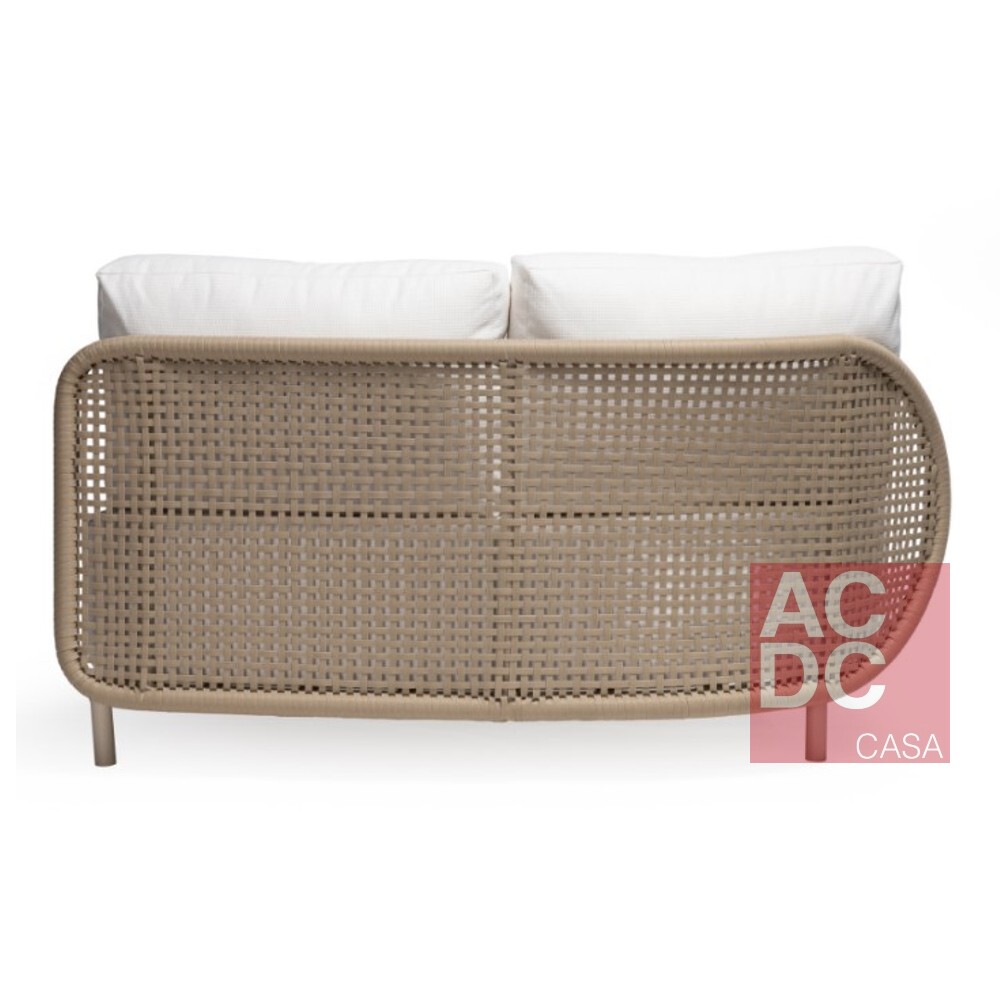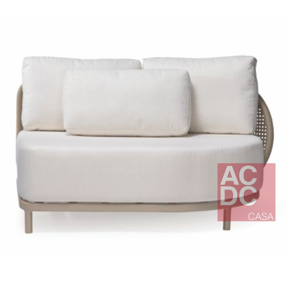 Material: Estrutura em alumínio com acabamento artesanalmente tramado em fibra sintética. Assento estofado com espuma D28 macia e manta acrílica. Revestimento em tecido próprio para área externa. Acompanha uma almofada decorativa estofada em fibra siliconizada por módulo.