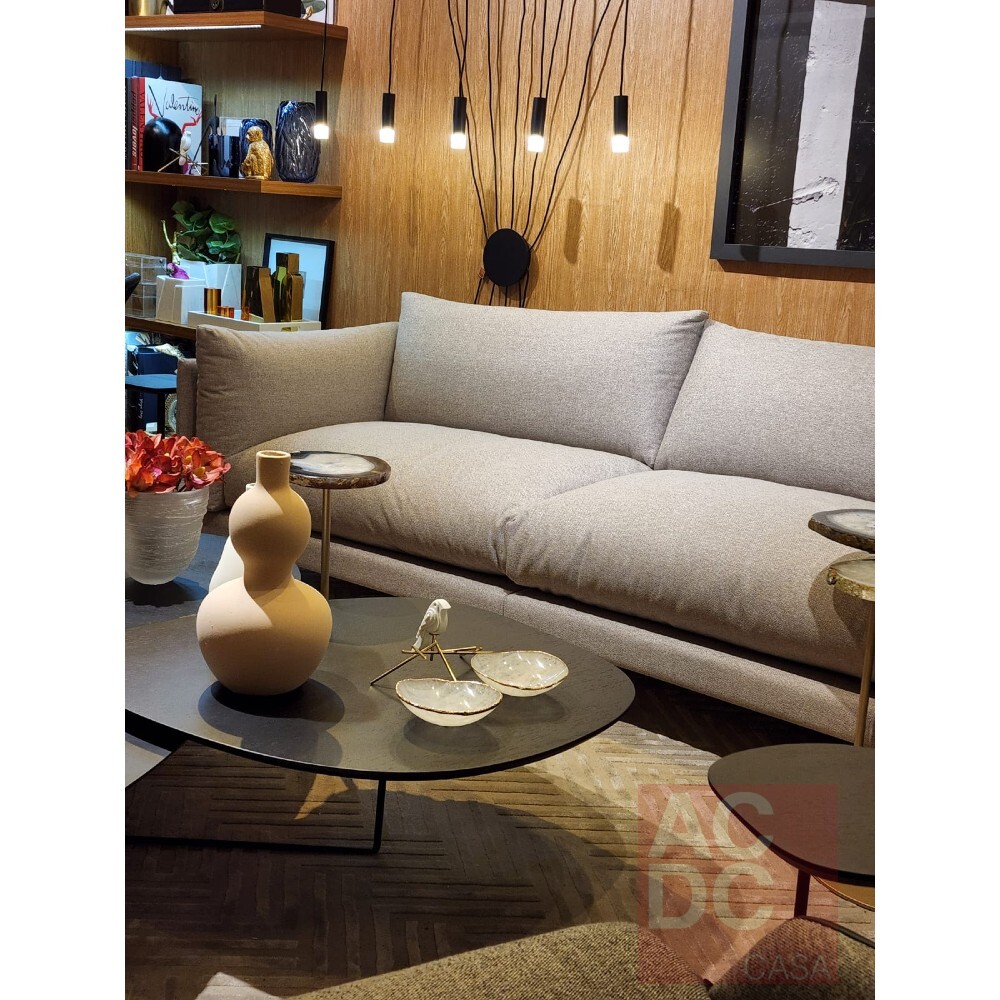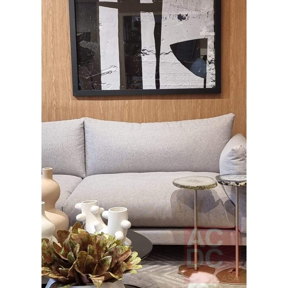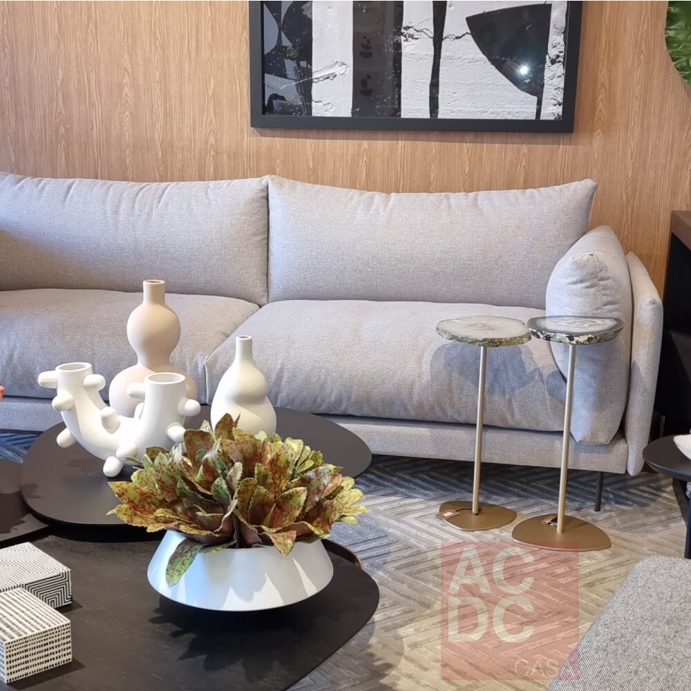 Sofá Garbo  é um modelo contemporâneo que foge do trivial. Com design moderno e braços mais finos, tem um conforto inigualável. Estrutura em madeira eucalipto, assento possui percinta elástica. Pés em aço carbono com pintura epóxi. Braço: 25cm total, sendo 5cm + 20cm de almofada de braço. Altura de assento: 47cm.