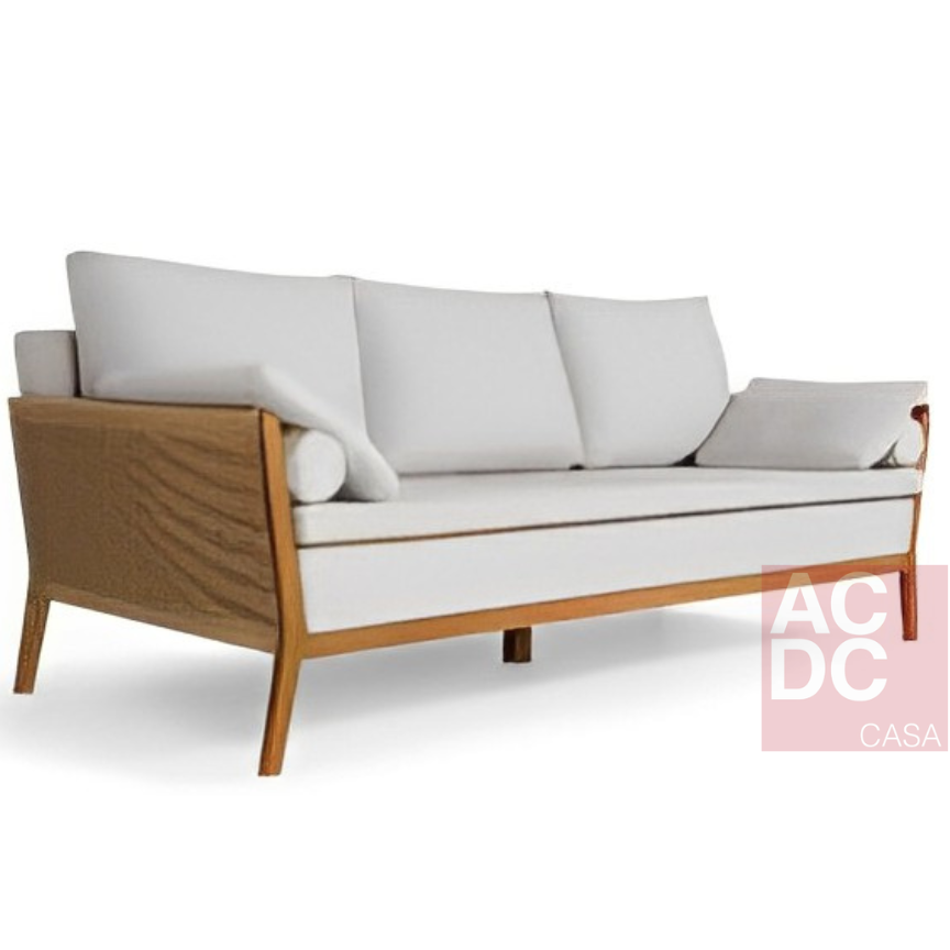 Nos painéis formados pelas laterais, a corda trançada é um detalhe enriquecedor, que dá um toque artesanal à decoração. O encosto apresenta almofadas soltas, e o assento é composto de almofadas fixas sobrepostas a percintas elásticas. Seja nas versões poltronas, 2 lug ou 3 lug