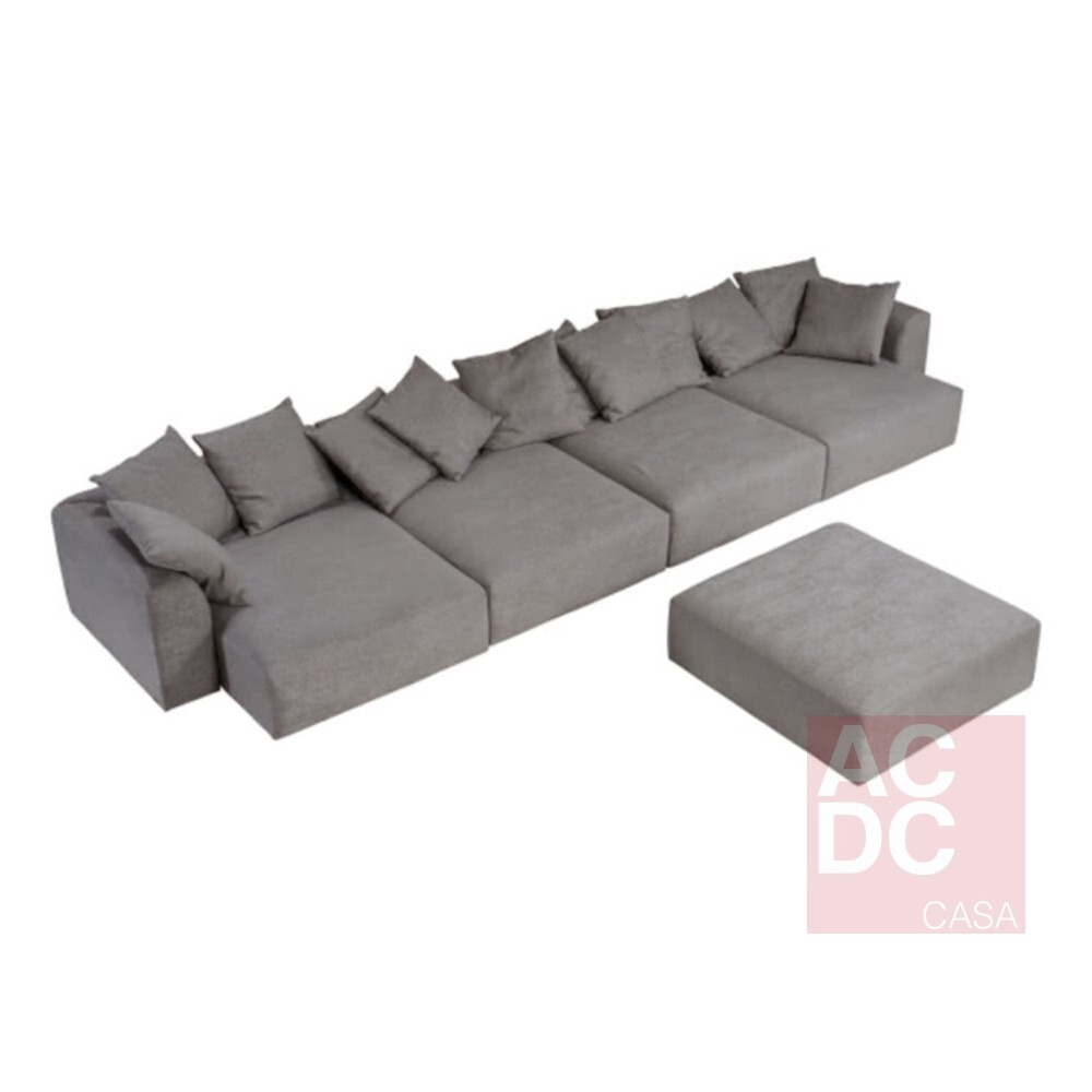 Assento retrátil com abertura de 40cm e costura em pesponto simples. Encosto fixo com costura em pesponto simples e almofada solta. Braço fixo com costura em pesponto simples. Almofada lombar 30cm de altura com costura em pesponto simples apenas no módulo 1B S/ENC. Pés em polipropileno injetado na cor preta. Opção de CTO com ou sem catraca de encosto.