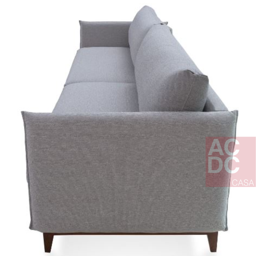 Material: Sofá com estrutura em madeira, revestida em tecido com diversas cores. Assentos com molas bonnell, percintas italianas e espuma D-33 SOFT.