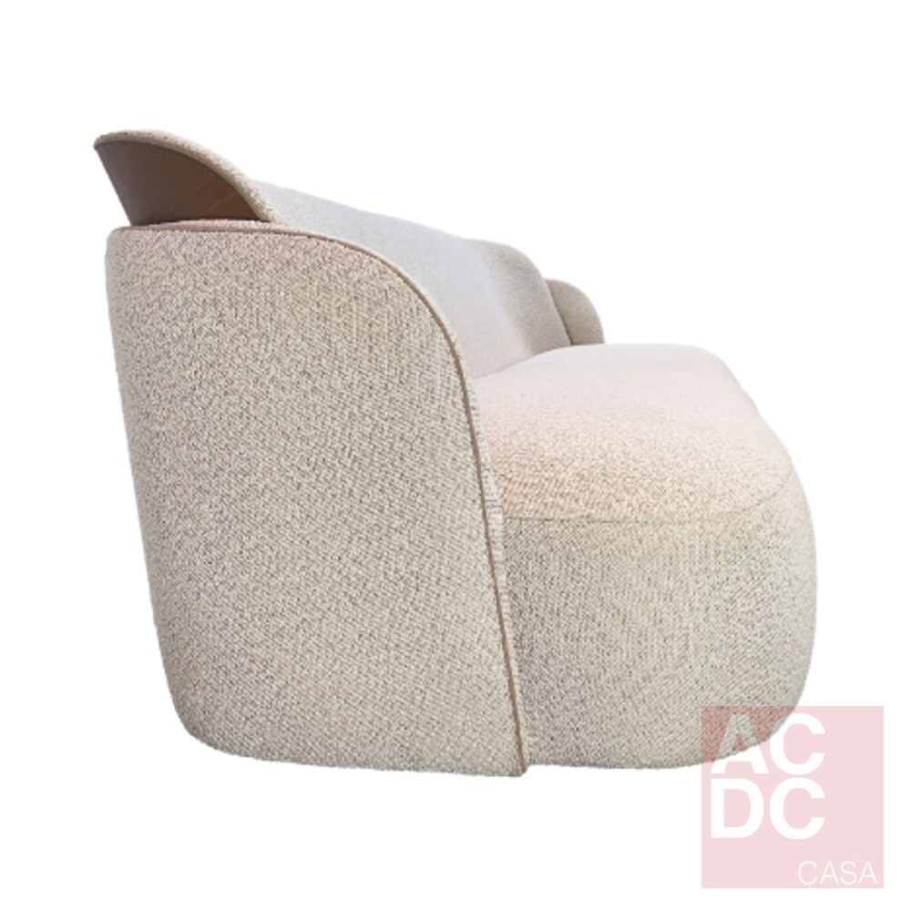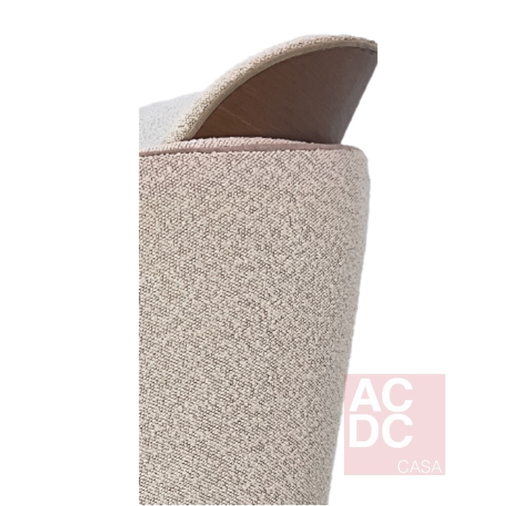 Material: Estrutura em madeira, encosto e assento estofados em tecido com detalhe em madeira