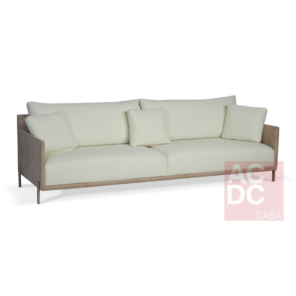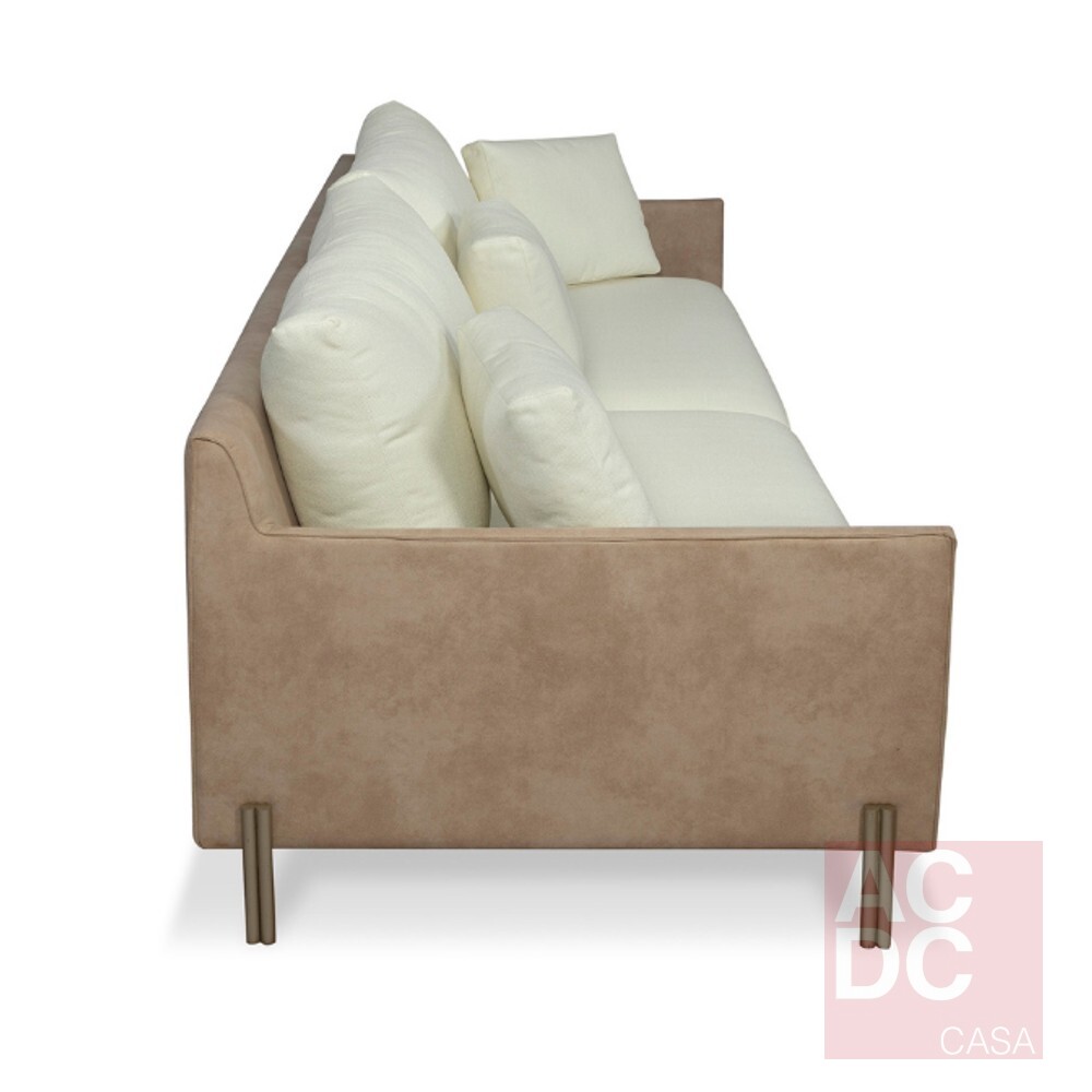 Material: Almofadas de assento fixas e almofadas de encosto soltas, pés em aço carbono pintado. Percintas elásticas de alta resistência.