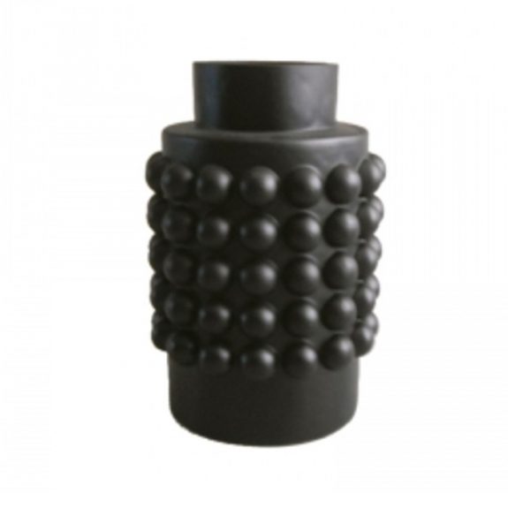 Material: Vaso de vidro gomilado na cor preto, com bolas